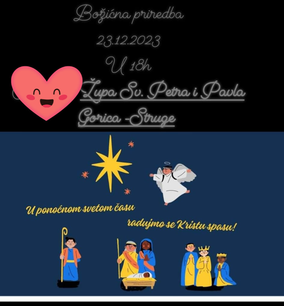 Božićna priredba održat će se u subotu 23. prosinca u 18 sati u crkvi svetih Petra i Pavla u župi Gorica - Struge.